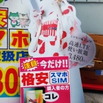 ソフトバンク「Ymobile 1980SHOCK!ワンキュッパ割」の桐谷美玲 等身大パネル。